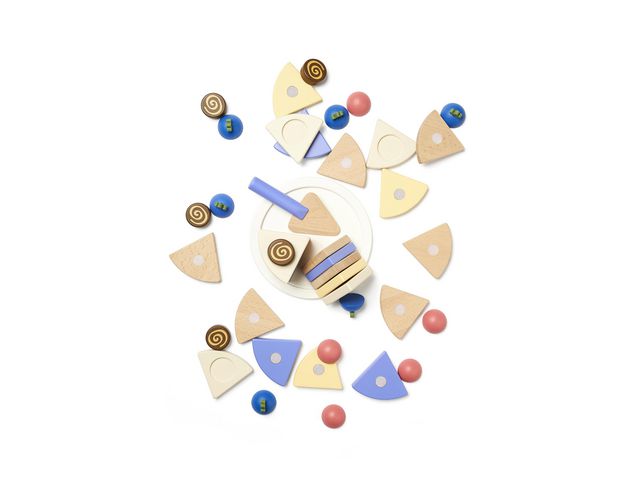 Här är tårtornas crème de la crème för barn. Bygg din egen tårta med upp till fem lager. Låt barnen bygga sin egen tårta med fem lager, varva med grädde, blåbärsmousse och vaniljfyllning och dekorera med choklad, blåbär och godis Kardborren mellan lagren gör det enkelt att bygga och ta isär när du vill. Innehåller: Tårtfat, 25 olika tårtlager = 5 blåbär, 5 chokladbitar, 5 jellybeans, tårtspade och tårtkartong. – Mått: 17 x 17 x 6.5 – Vattenbaserad färg – Material: MDF, bok, papp – Rekommenderad ålder: från 3 år – FSC – CE