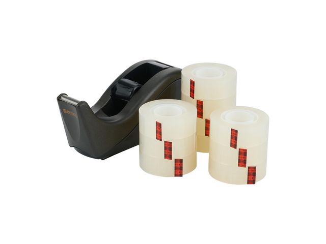 Idealisk för osynlig limning, fästning, reparation och inpackning. Kan rivas för hand i en enkel rullning! – Storlek: 19 mm x 33 meter – Levereras med tejphållare
