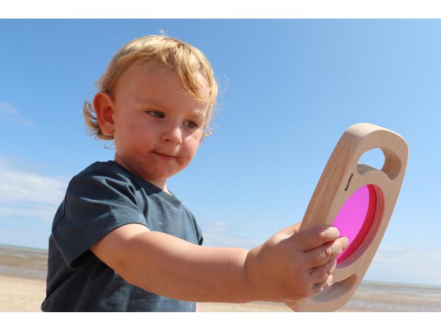 Låt barnen se världen med nya ögon Låt barnen se världen med nya ögon. 3 akrylfärgpaneler i ljusrött, blått Varje ram är 18 x 120 x 2 cm, fönster Ø 8 cm. – Material gummiträ – Lämpliga från 1 år – CE-märkt