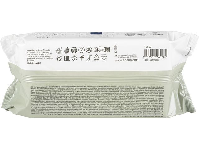 Håll händerna rena utan vatten eller tvål med Abena våtservetter som även har återfuktande egenskaper. Abena våtservetter är tillverkade av ett sprött, icke-vävt material och de är bekväma och mjuka mot huden. Dessa servetter innehåller fuktgivande ingredienser som håller huden återfuktad samtidigt som de varsamt rengör huden. Använd våtservetterna varje dag för barnens dagliga rengöring eller rengöring på sjukhus, kontor eller i hemmet. – Med plastlock – Mjuka, icke-vävda servetter som inte ska spolas ner – Rengör och återfuktar – Utan parfym eller färgämnen – Dermatologiskt testade – Mått: 180 x 200 mm – Antal: 80 – Vegan – Rekomenderad av Astma- och Allergiförbundet – Svanen: Licensnummer 30900023