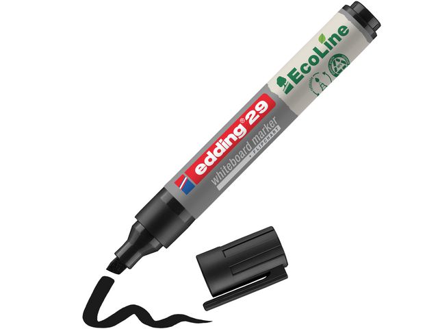 Whiteboardmärkpennan Edding 29 EcoLine fungerar på nästan alla icke-porösa ytor och består av plast tillverkad av 90 % återvunnet material. Den här märkpennan är speciellt utformad för användning på whiteboardtavlor och nästan alla icke-porösa ytor, till exempel emalj, glas och melamin. Det snabbtorkande och ljusbeständiga bläcket kan enkelt torkas bort. Märkpennan innehåller ett torksäkert bläck som inte torkar även om korken är av under flera veckor. Whiteboardmärkpennan Edding 29 EcoLine har en snedskuren spets som ger 1–5 mm linjebredd. – Minst 90 % av den totala mängd plast som används är återvunnet material – Icke permanent bläck – Med huv – Snedskuren spets – Linjebredd: 1 – 5 mm – Påfyllningsbar med refillsystemen Edding BTK 25 och BT 30 – Textfärg: Svart – Färg pennkropp: Beige